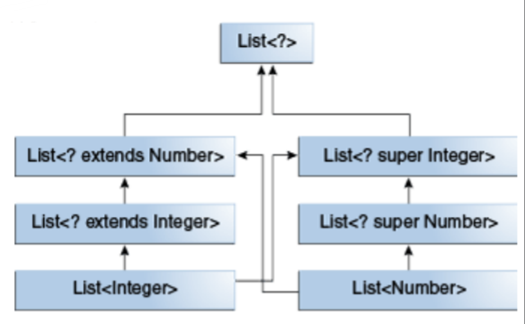 <? super Integer> 可以接受 : Integer, Number, and Object